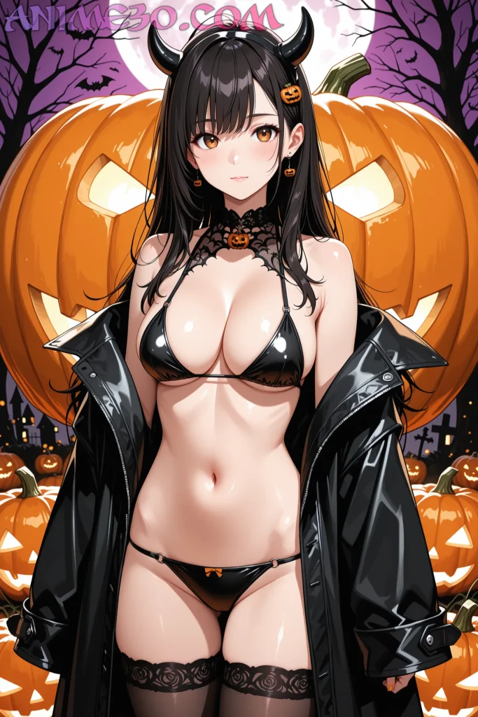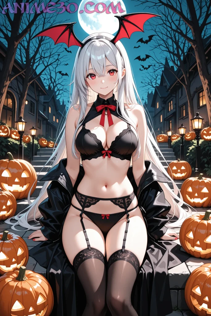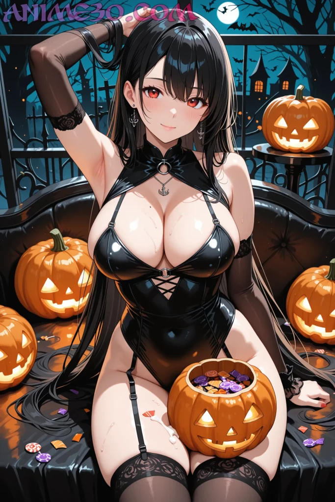 Consejo: combina una pose típica de anime con elementos de Halloween (calabazas, niebla, luces de luna) y aplica una paleta cromática limitada para mantener coherencia visual.